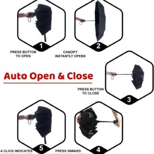 Rain-Mate Windproof Compact Umbrellas for Rain – Portable Folding Travel Umbrella – Auto Open & Close Button