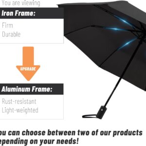 Durable Design with Iron Frame: This is a sturdy umbrella for all genders. Featuring a black iron pole and fiberglass ribs, this compact umbrella can withstand 55 mph gusts.